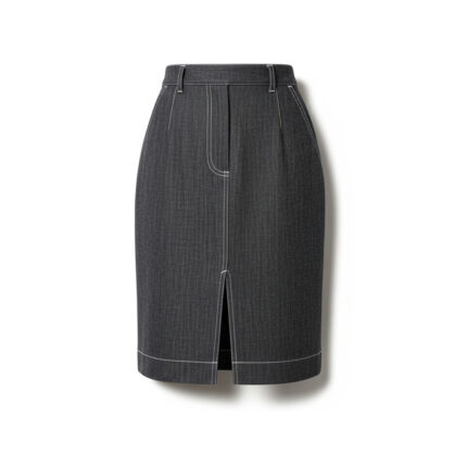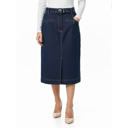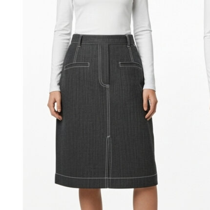 Saia midi em tecido estruturado, com corte reto e caimento impecável.